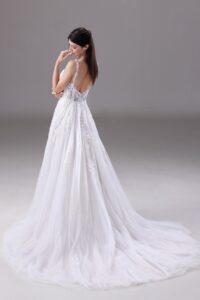 ELEGANT BRIDAL GOWN WITH FLOWING CHIFFON TOP AND CREPE SKIRT