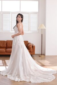 ROMANTIC MINIMALIST BANDED CUFF A-LINE BRIDAL DRESS WITH SIDE POCKETS