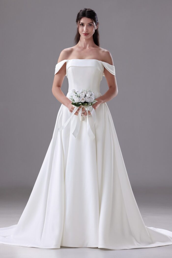 ROMANTIC MINIMALIST BANDED CUFF A-LINE BRIDAL DRESS