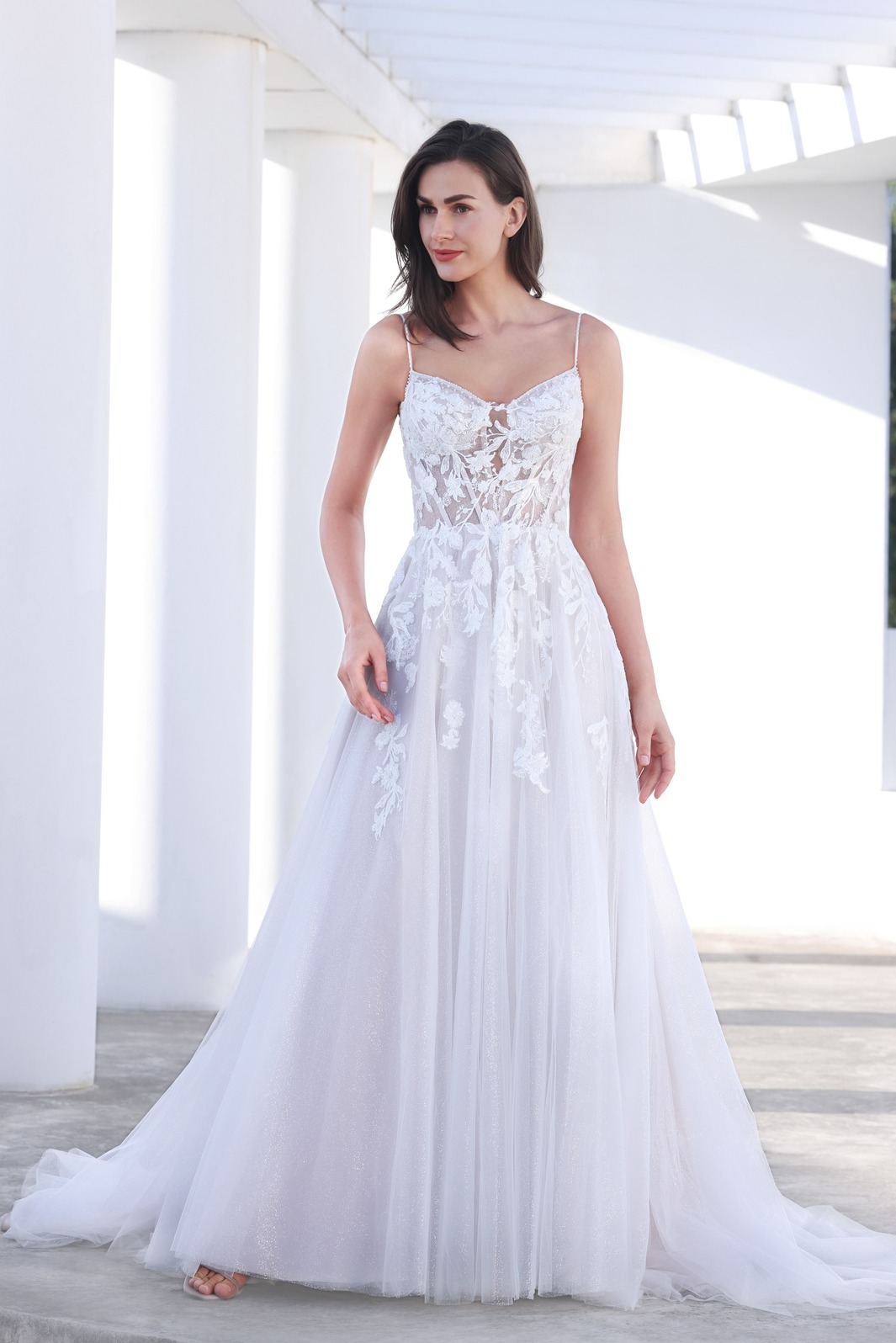 A-LINE WEDDING GOWN WITH BEADED LACE AND GLITTER TULLE