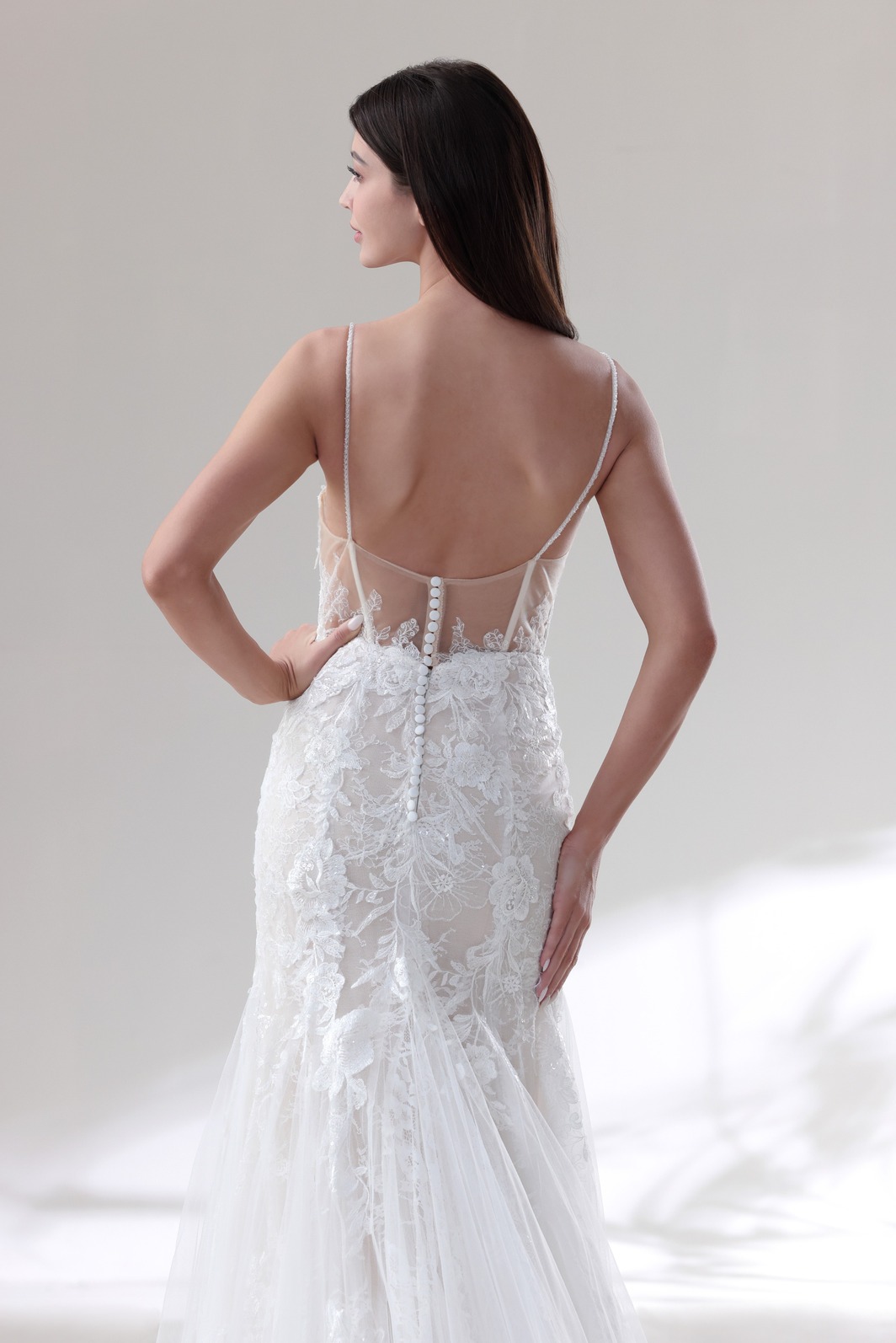 CHIC MERMAID WEDDING DRESS WITH IRREGULAR LACE PLACEMENT
