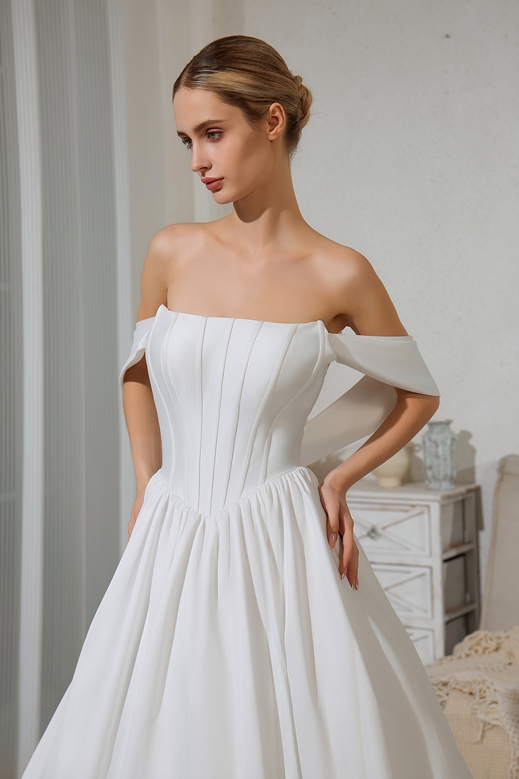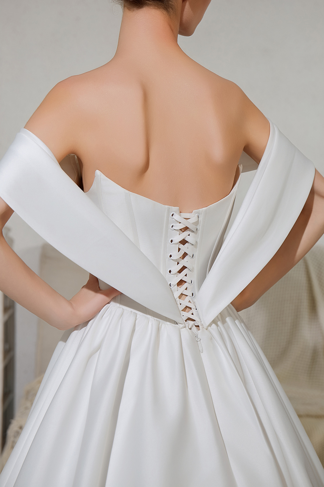 GORGEOUS WEDDING GOWN WITH BASQUE WAIST AND DETACHABLE STRAPS