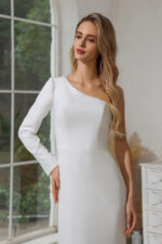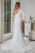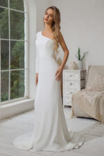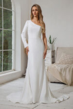 ONE-SHOULDER BRIDAL GOWN WITH PEARL NECK AND LONG SLEEVE