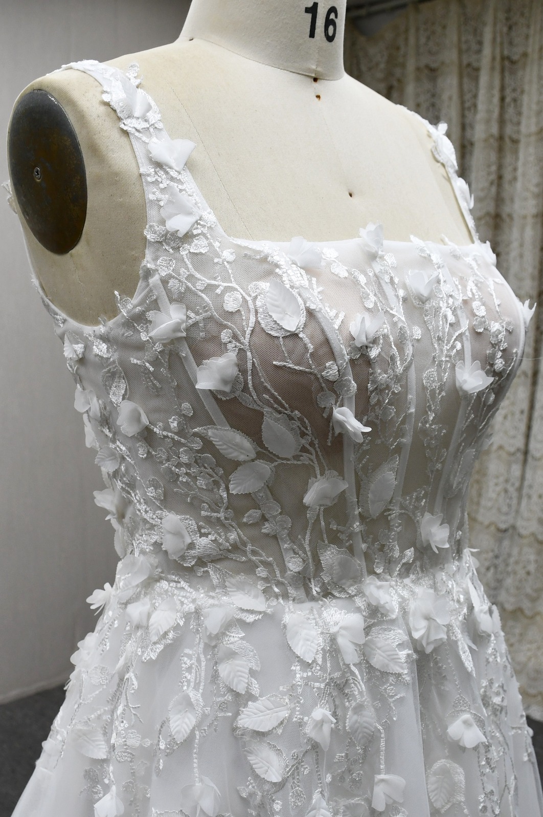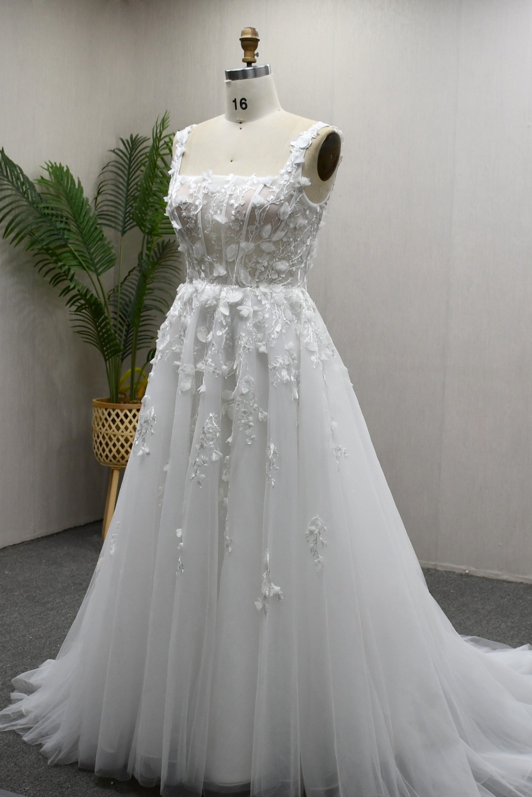 A-LINE WEDDING GOWN WITH 3D LACE AND SLIT