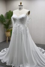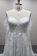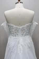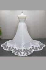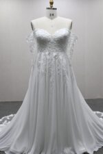 A-LINE WEDDING GOWN WITH OFF-THE-SHOULDER LONG SLEEVES AND SCALLOPED TRAIN