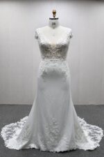 MERMAID WEDDING DRESS WITH CAP SLEEVES AND SCALLOPED TRAIN