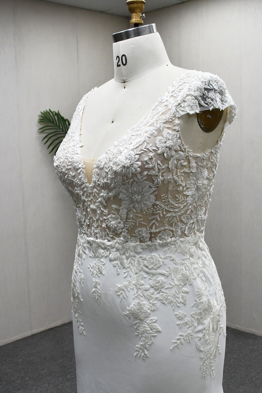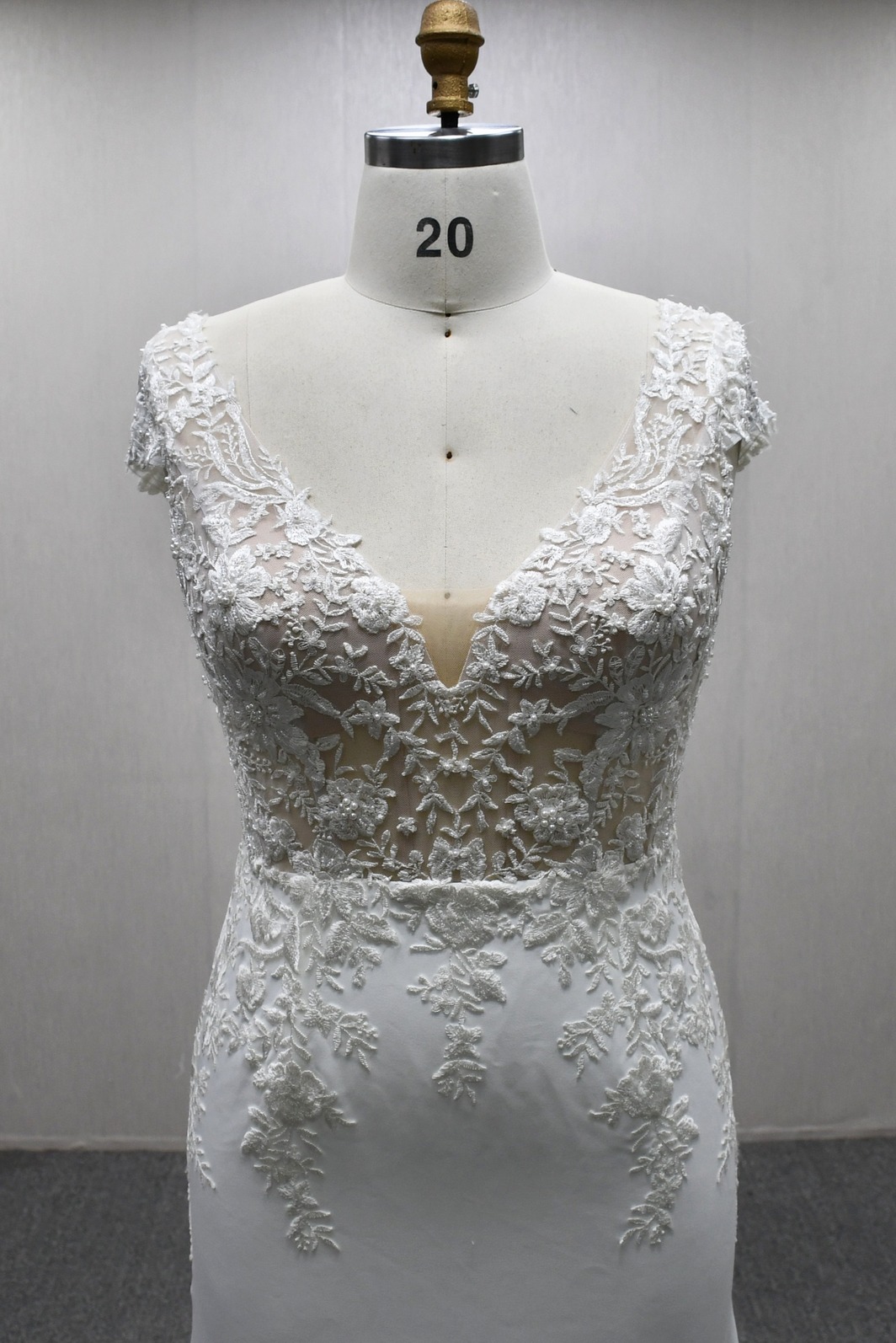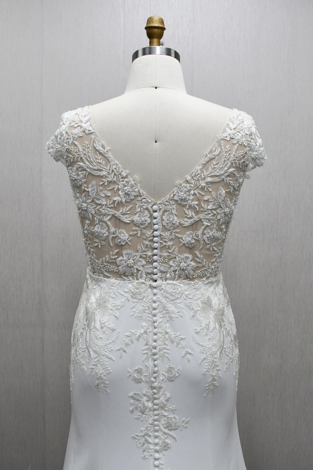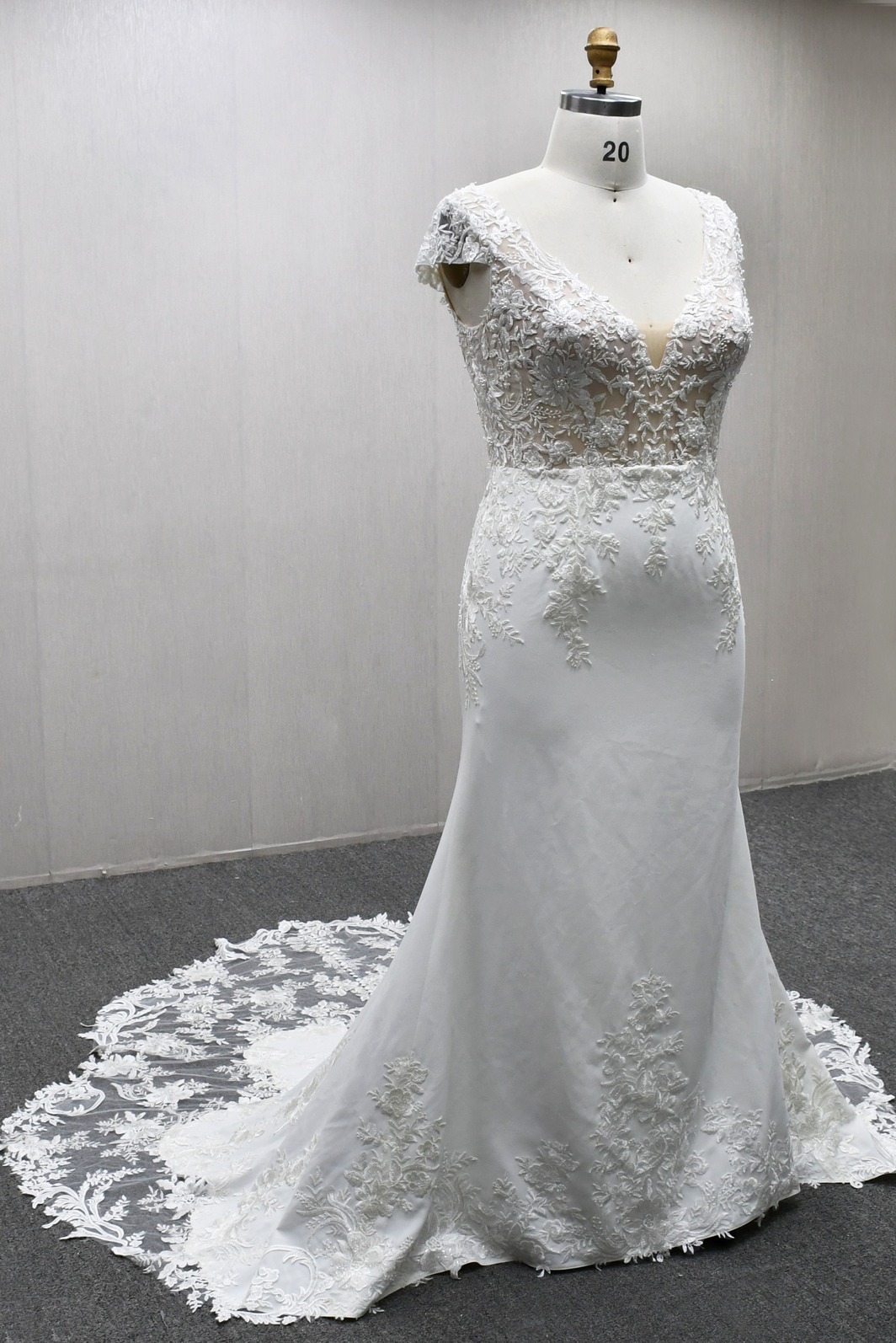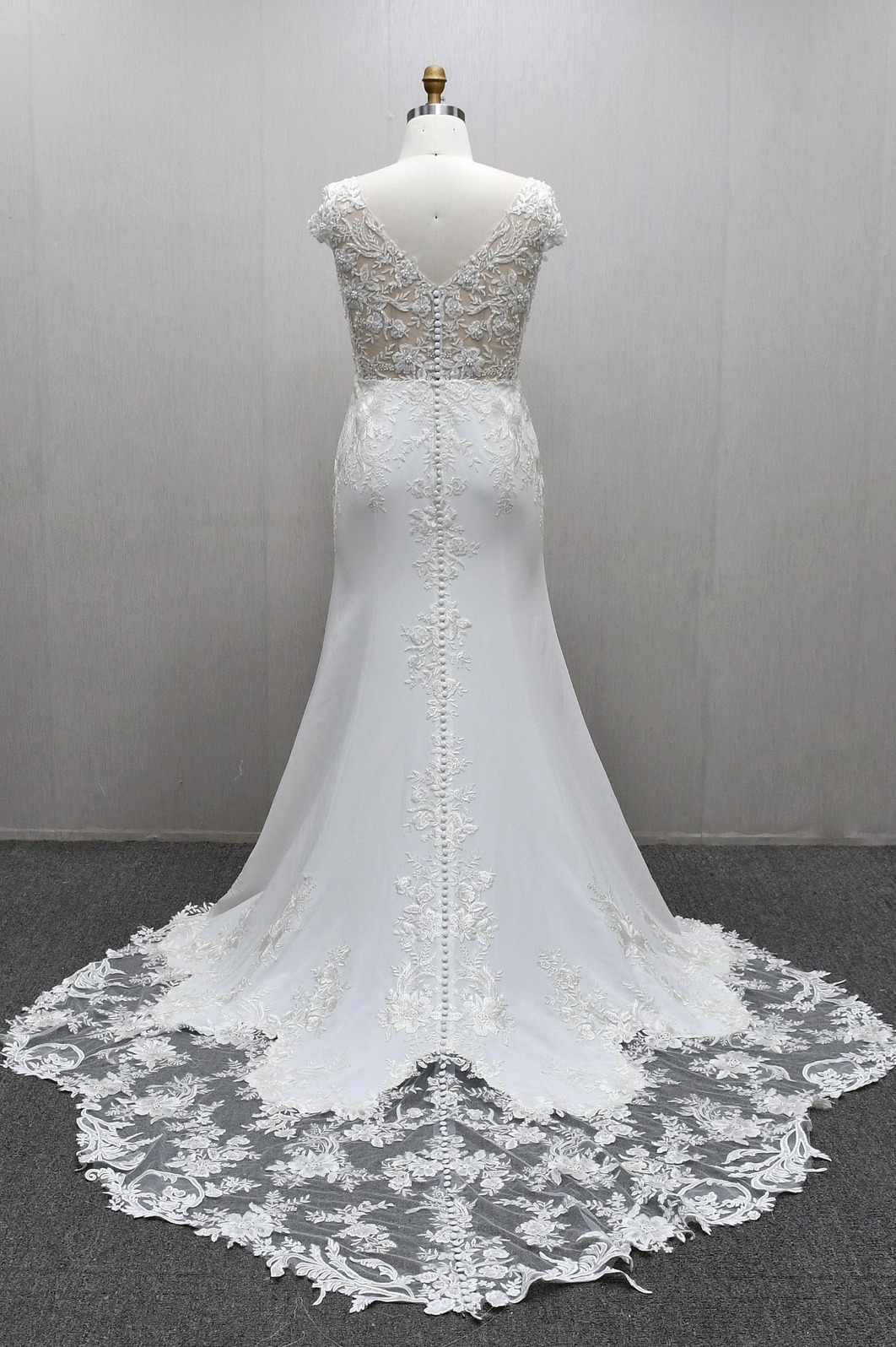 MERMAID WEDDING DRESS WITH CAP SLEEVES AND SCALLOPED TRAIN