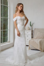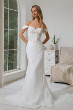MERMAID LACE WEDDING DRESS WITH BASQUE WAIST AND DETACHABLE STRAPS
