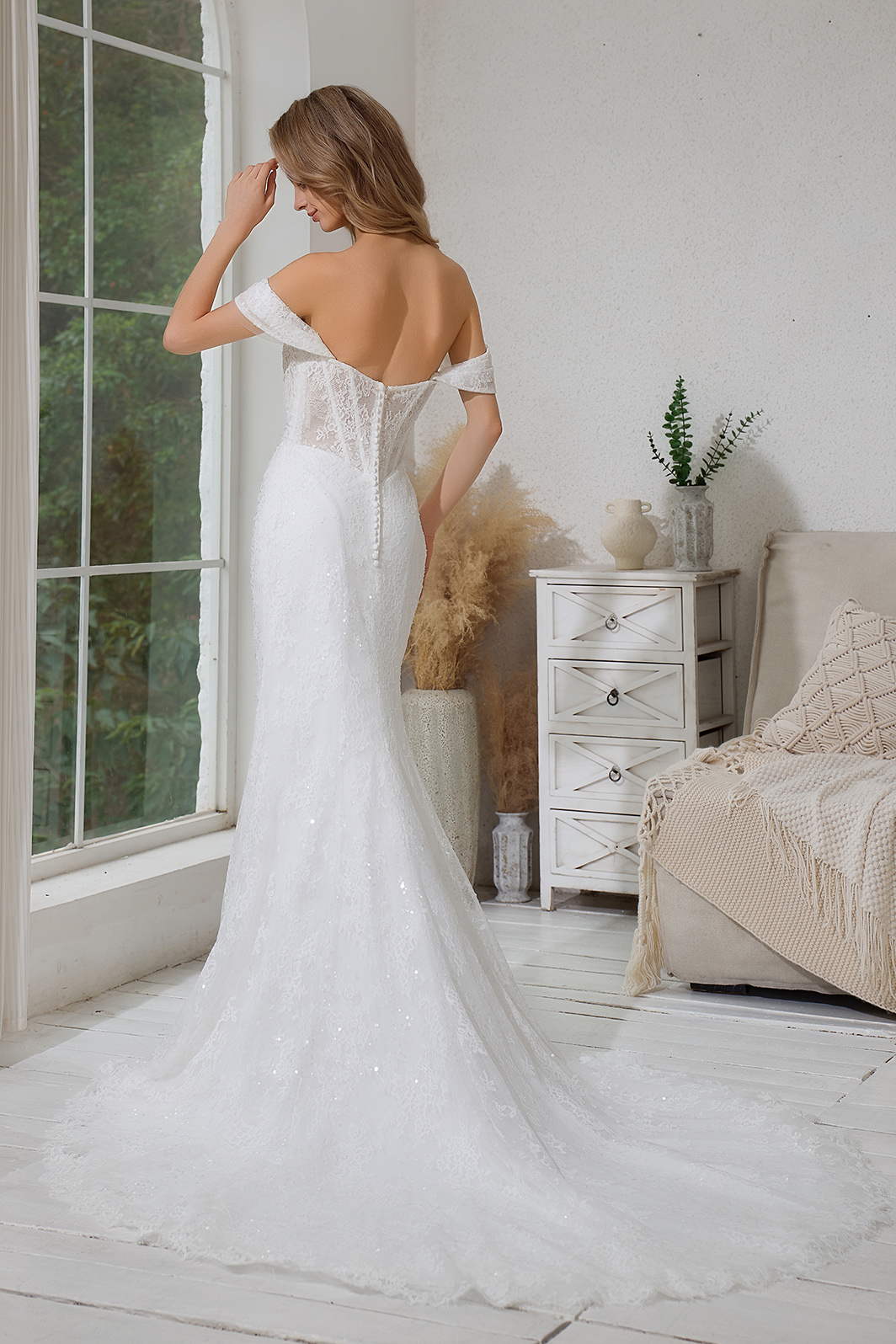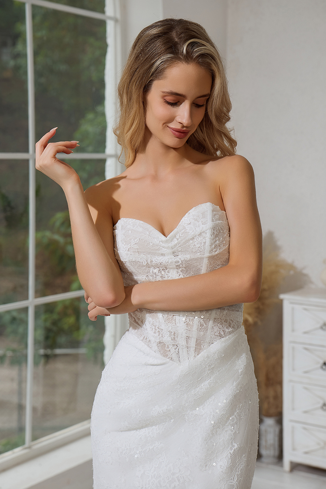 MERMAID LACE WEDDING DRESS WITH BASQUE WAIST AND DETACHABLE STRAPS