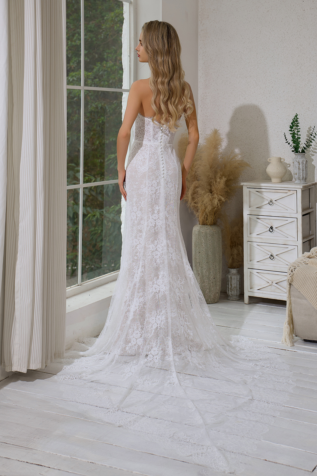 BOHO STRAPLESS FULL LACE BRIDAL GOWN