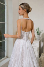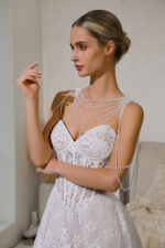 CORSET LACE WEDDING DRESS WITH PEARL NECKLACE