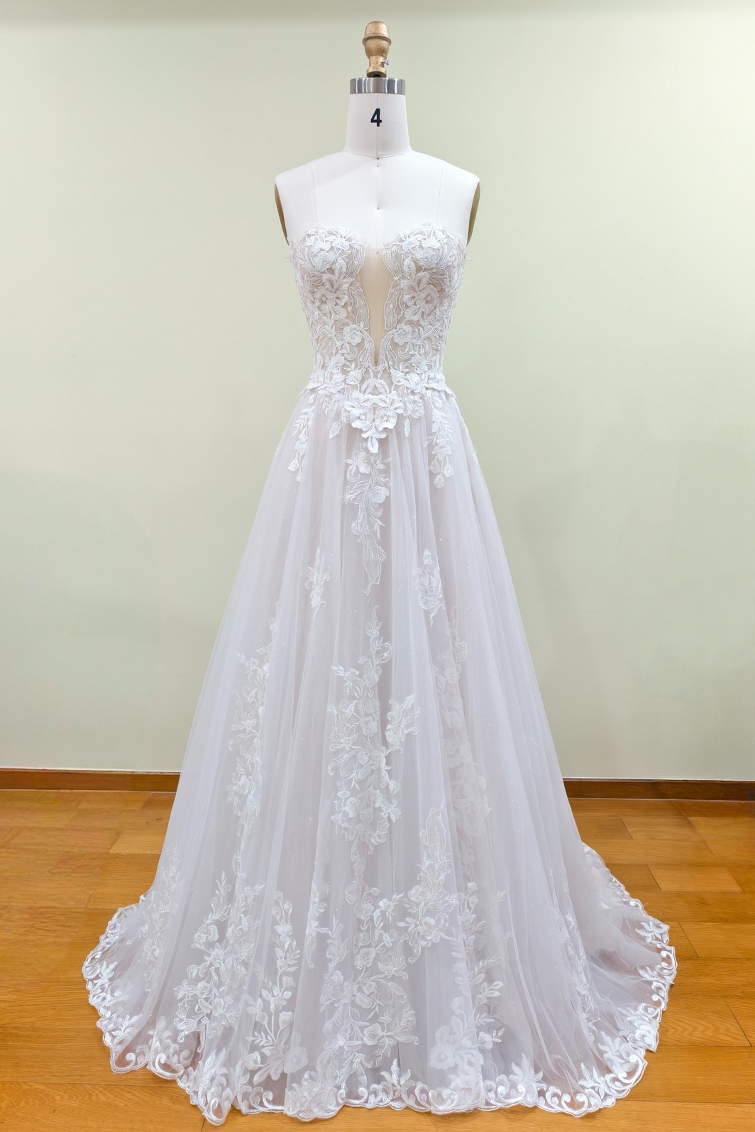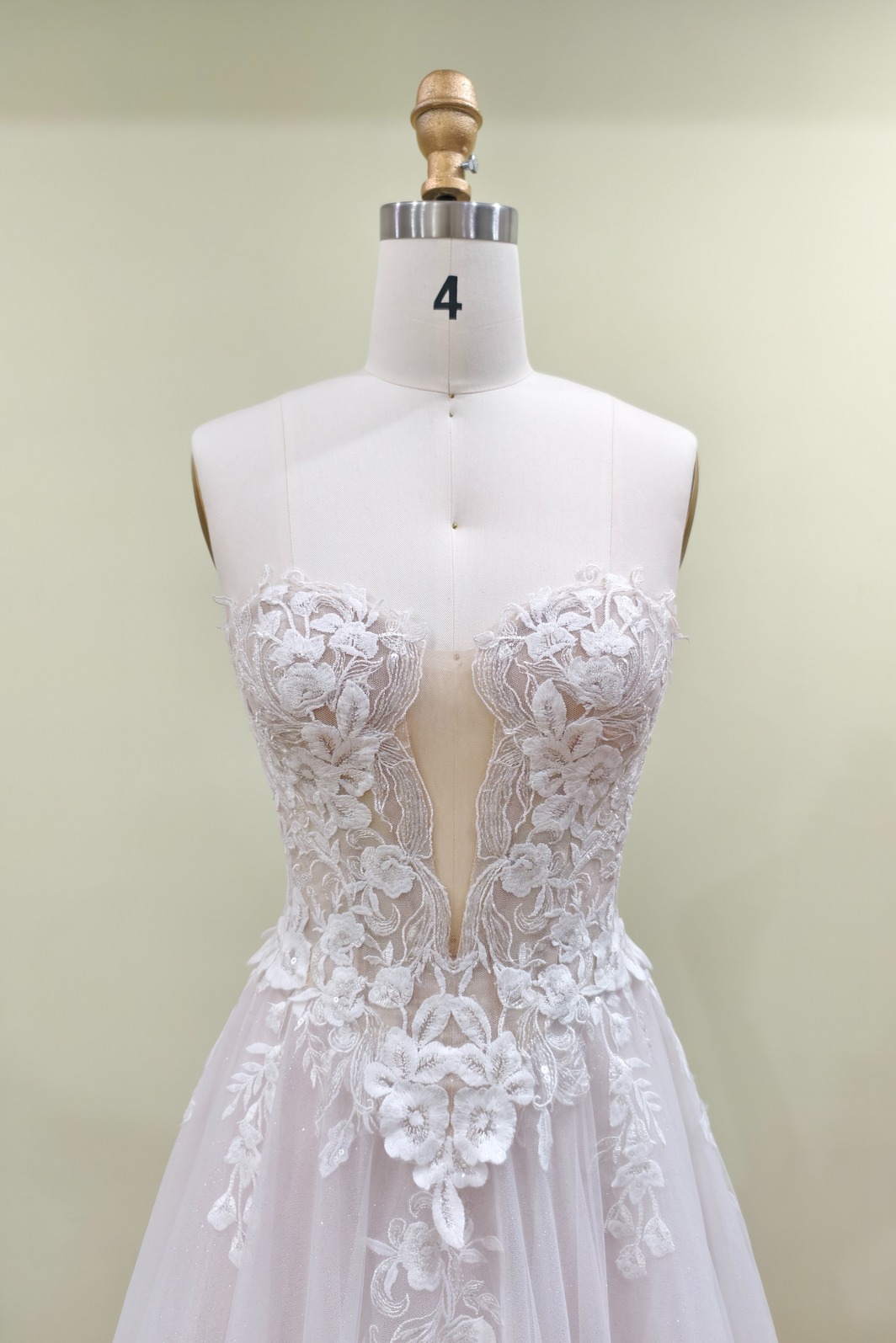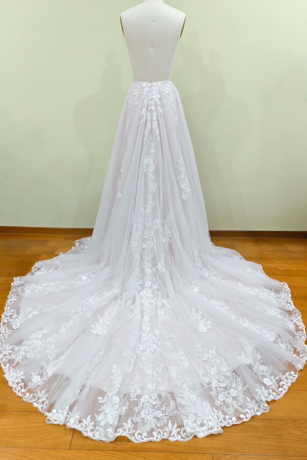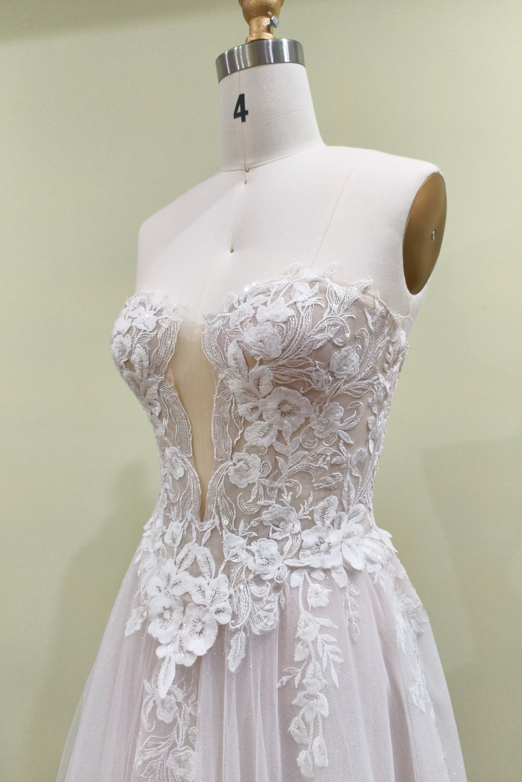 TWO-PIECE WEDDING GOWN WITH FLORAL LACE AND GLITTER