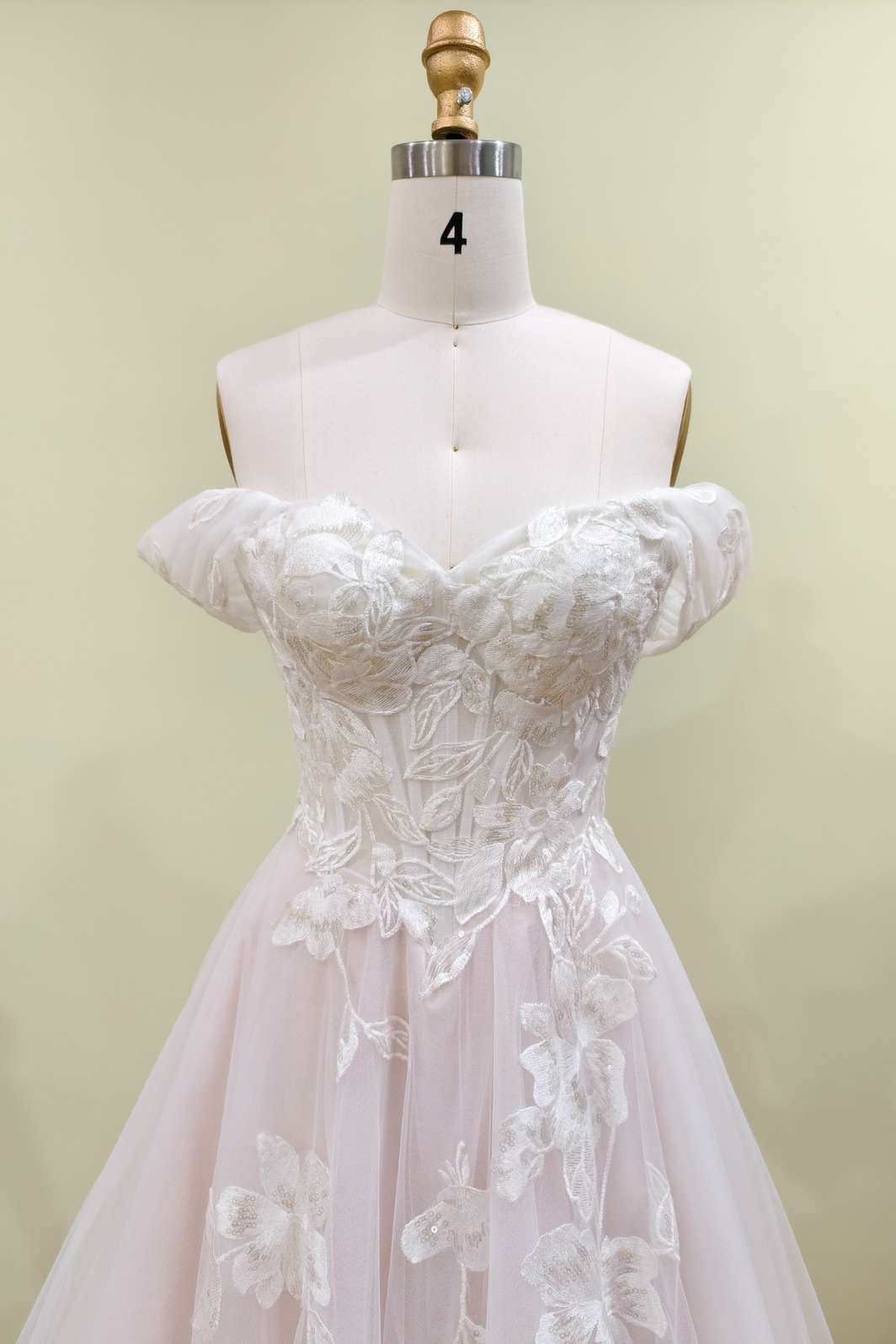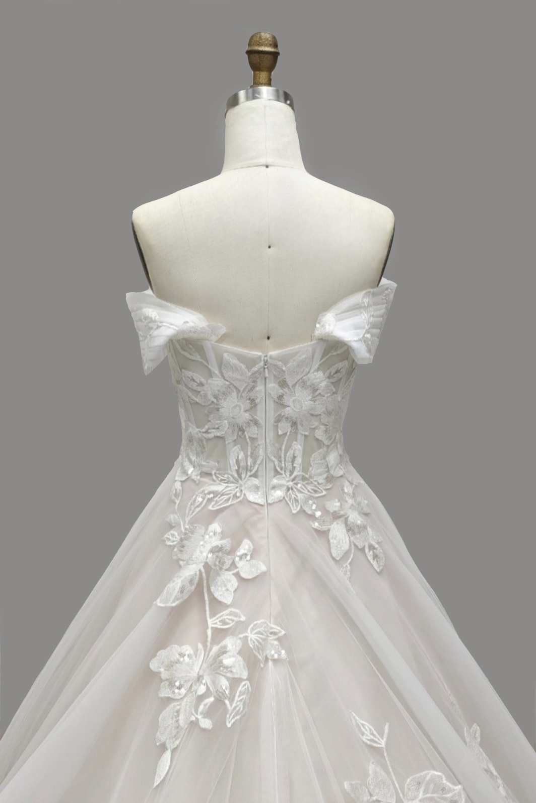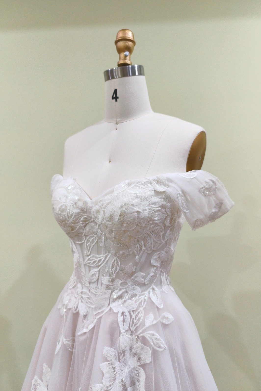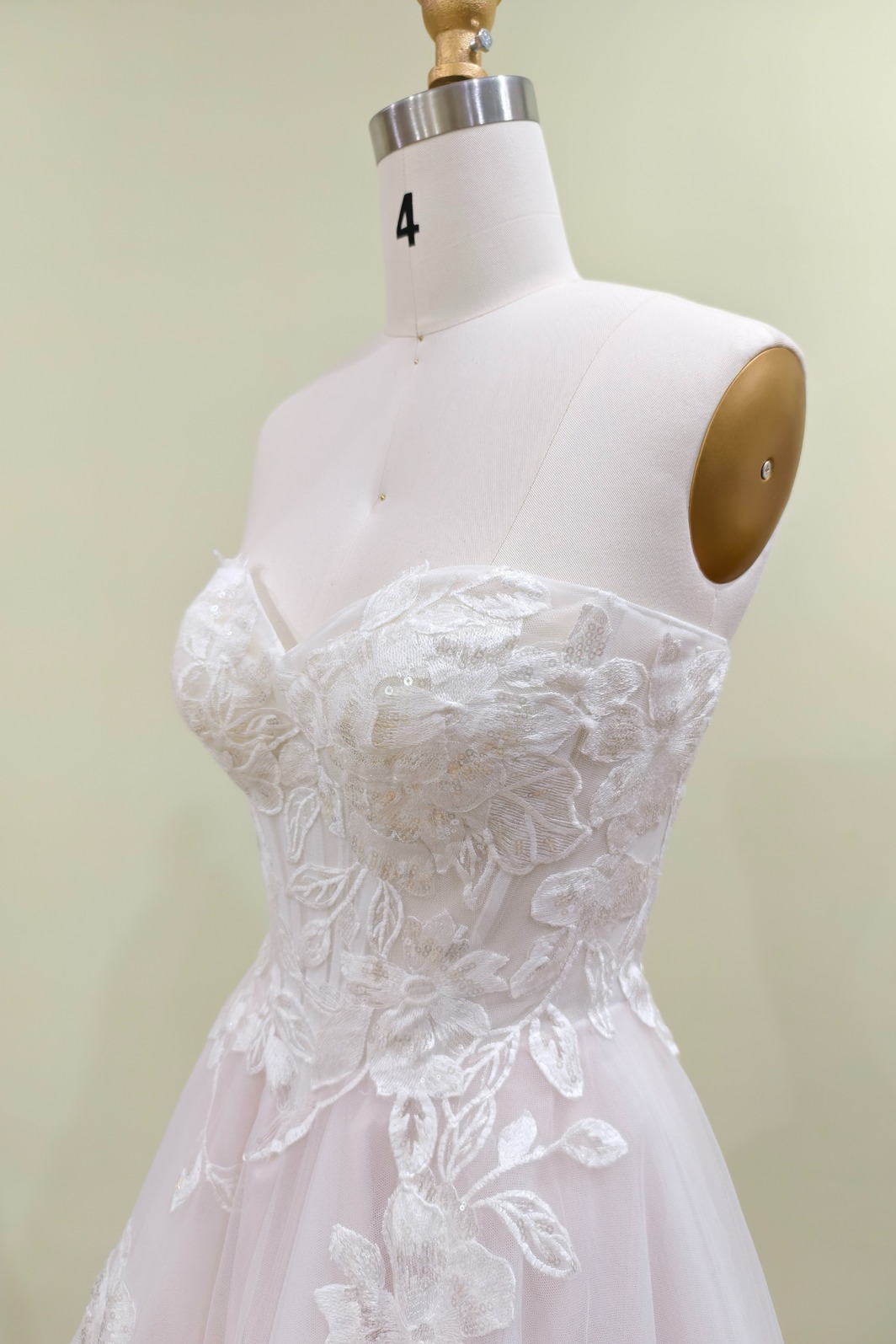 A-LINE BRIDAL GOWN WITH CORSET BODICE AND DETACHABLE STRAPS