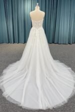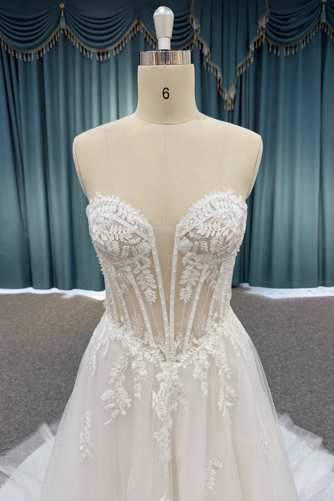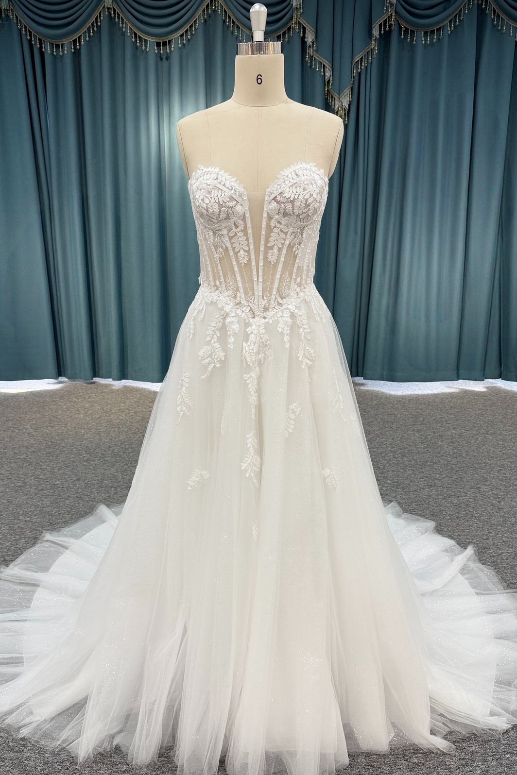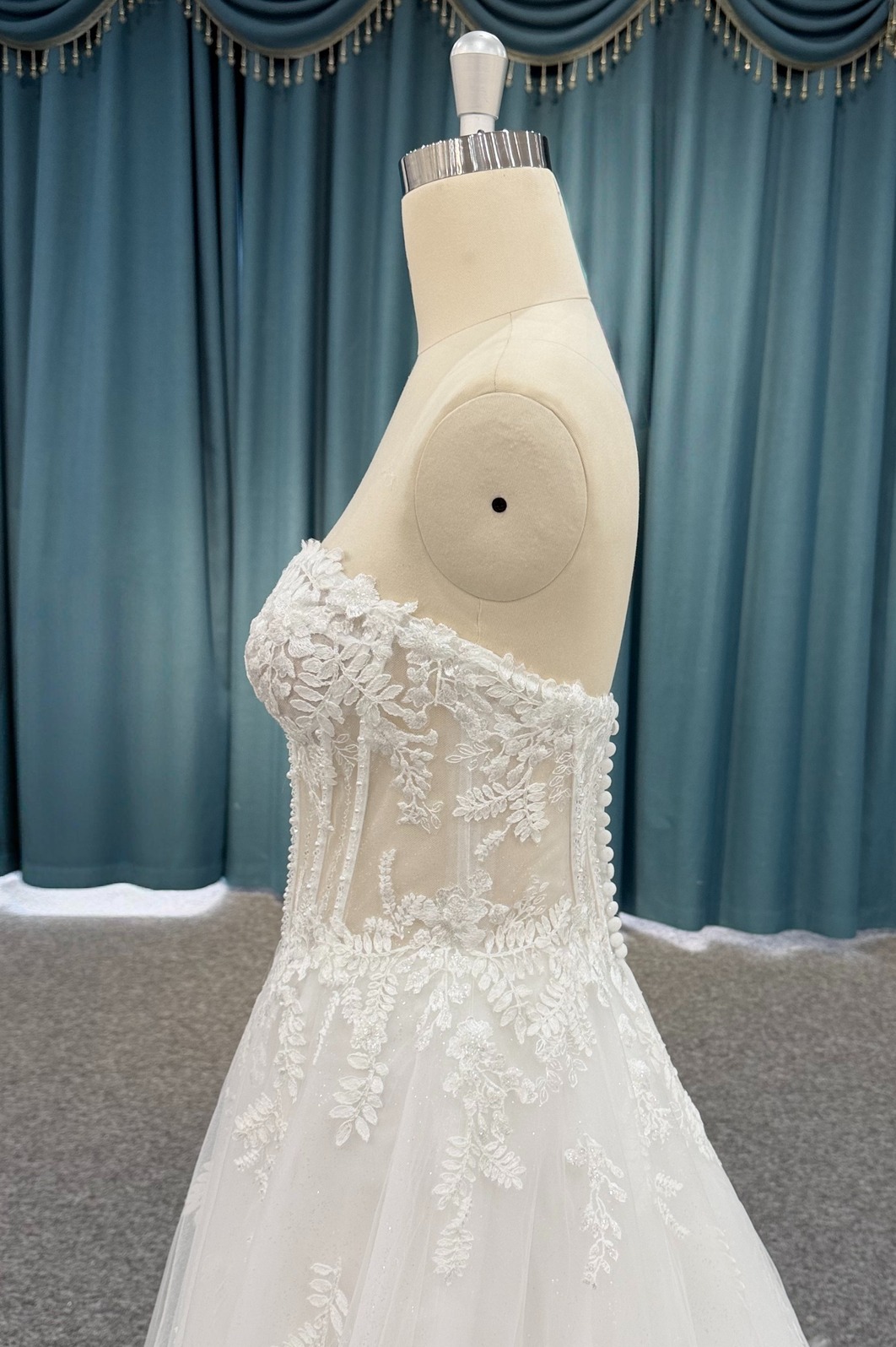 A-LINE LACE WEDDING GOWN WITH CORSET BODICE AND SLIT