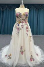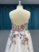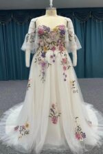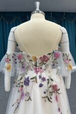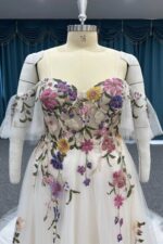 COLORFUL FLORAL OFF-THE-SHOULDER GLITTER TULLE WEDDING DRESS