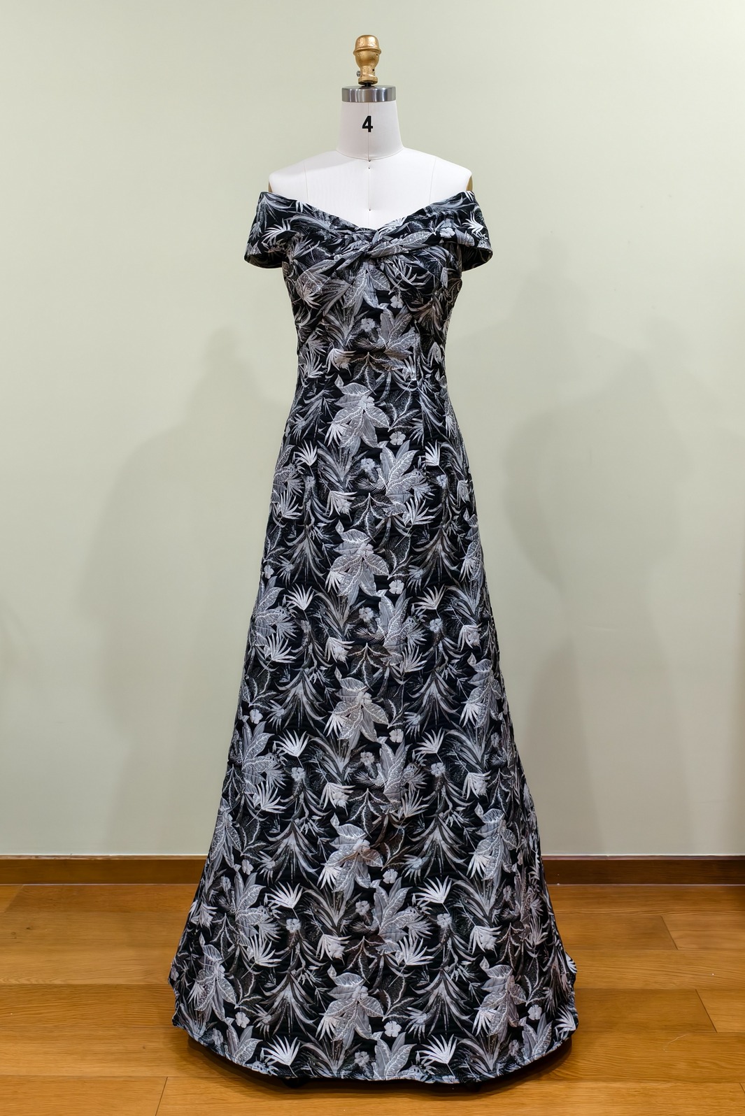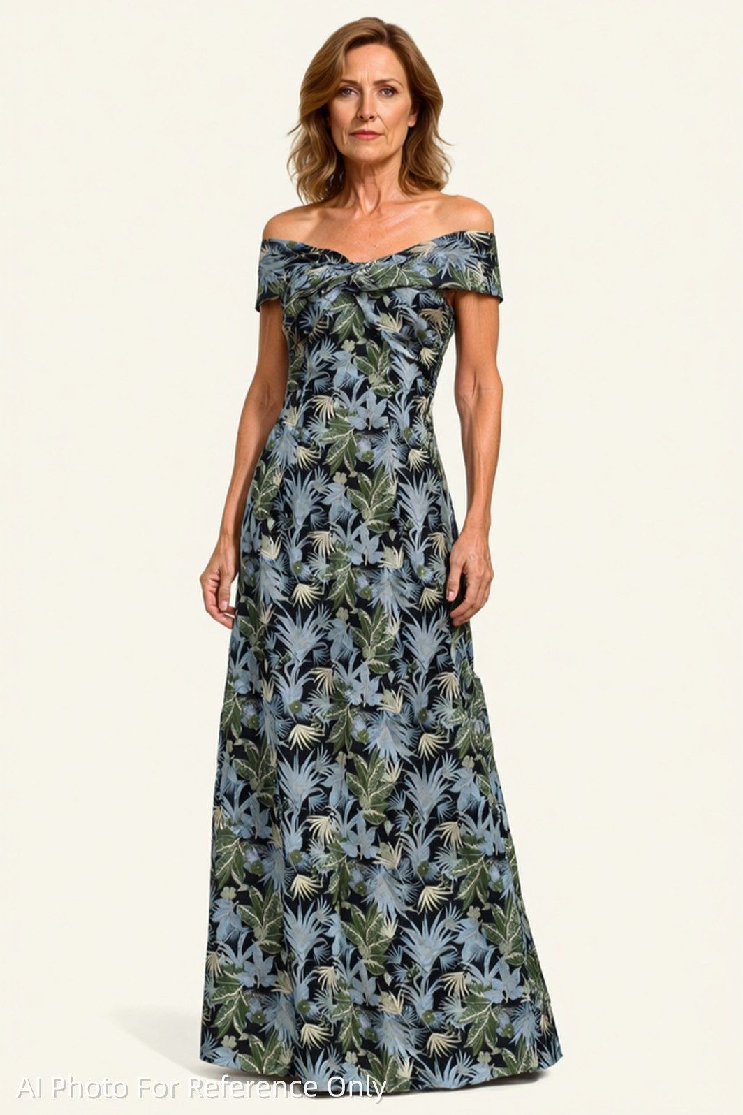 A-line Off-The-Shoulder Jacquard Mother of the Bride Dress